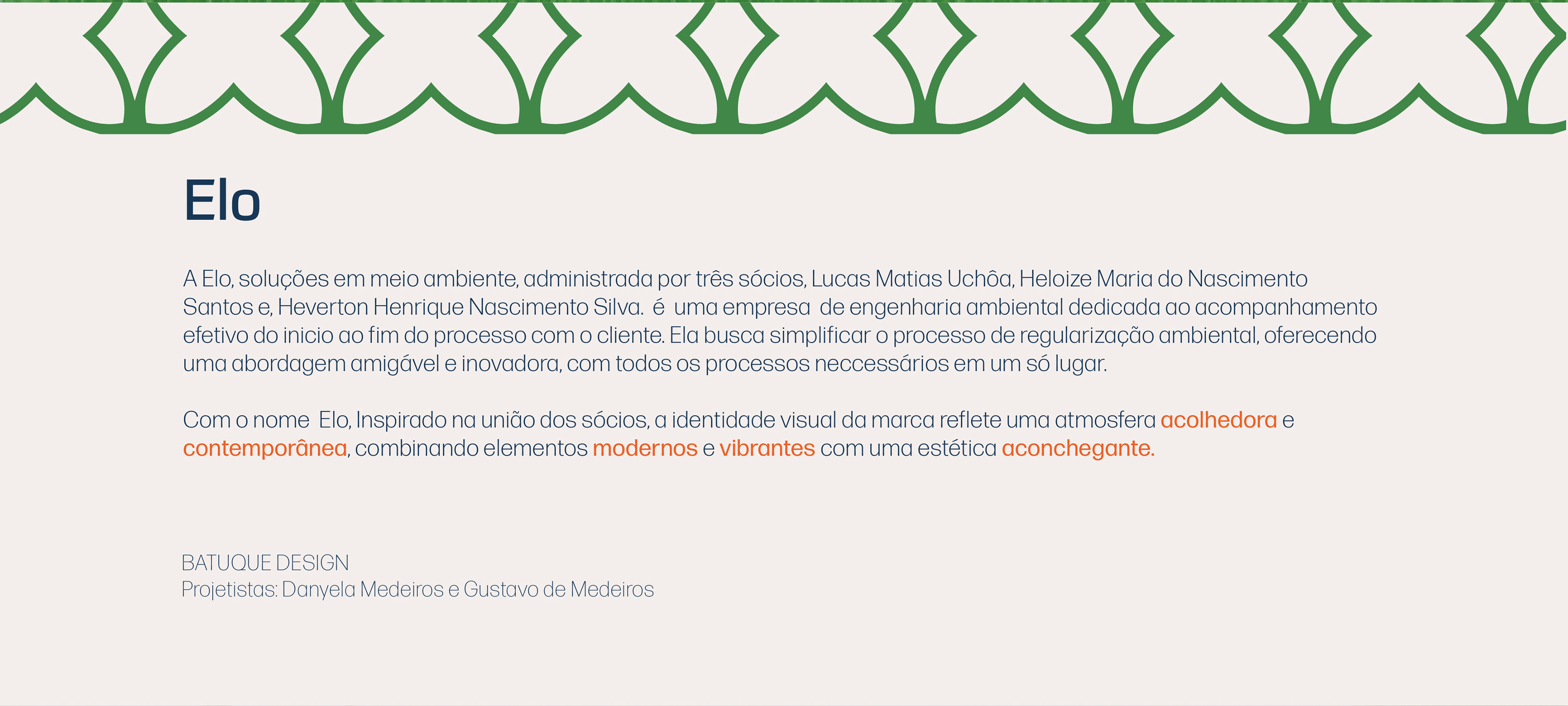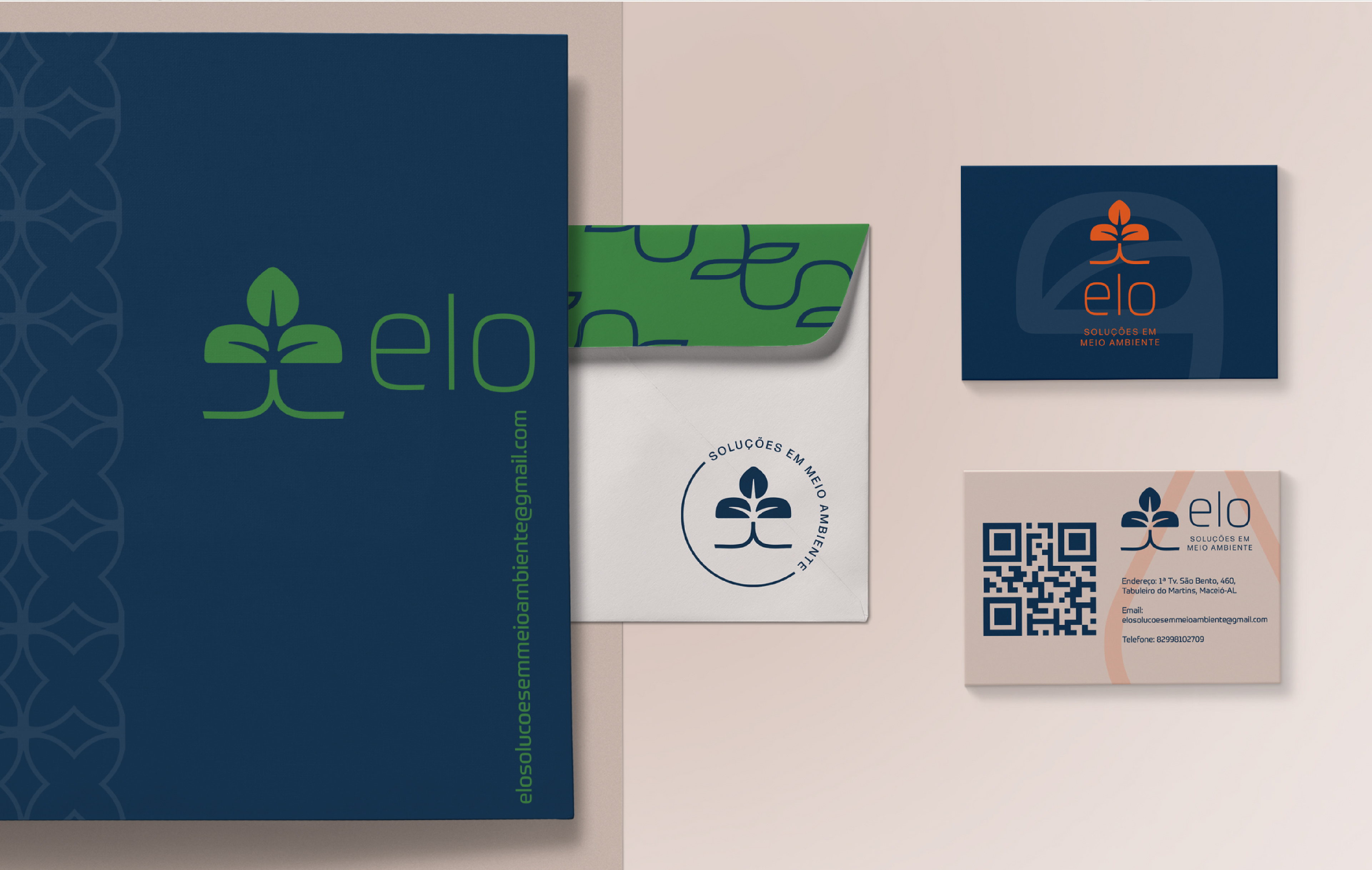 Projeto de Identidade Visual destinado a empresa Elo, soluções em meio ambiente, empresa de engenharia ambiental. Projeto feito através da empresa júnior Batuque Design.